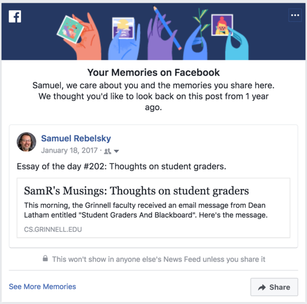 It appears that Facebook has a better memory than I do. It also appears that there’s something about this time of year that leads me to muse about my workload as it relates to grading.